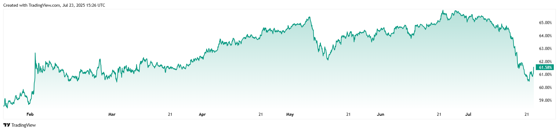 Thị trường tài sản mã hóa rộng hơn gặp phải tình trạng tệ hơn với mức giảm 1,20%, đẩy Chỉ số Altcoin Season của CoinMarketCap xuống còn 46 điểm. Chỉ số này đã đạt đỉnh 56 điểm vào thứ Hai, khiến một số nhà phân tích sớm tuyên bố bắt đầu “mùa altcoin” – thời kỳ mà theo CoinMarketCap, 75% trong top 100 token vượt trội hơn bitcoin trong khoảng thời gian ba tháng.