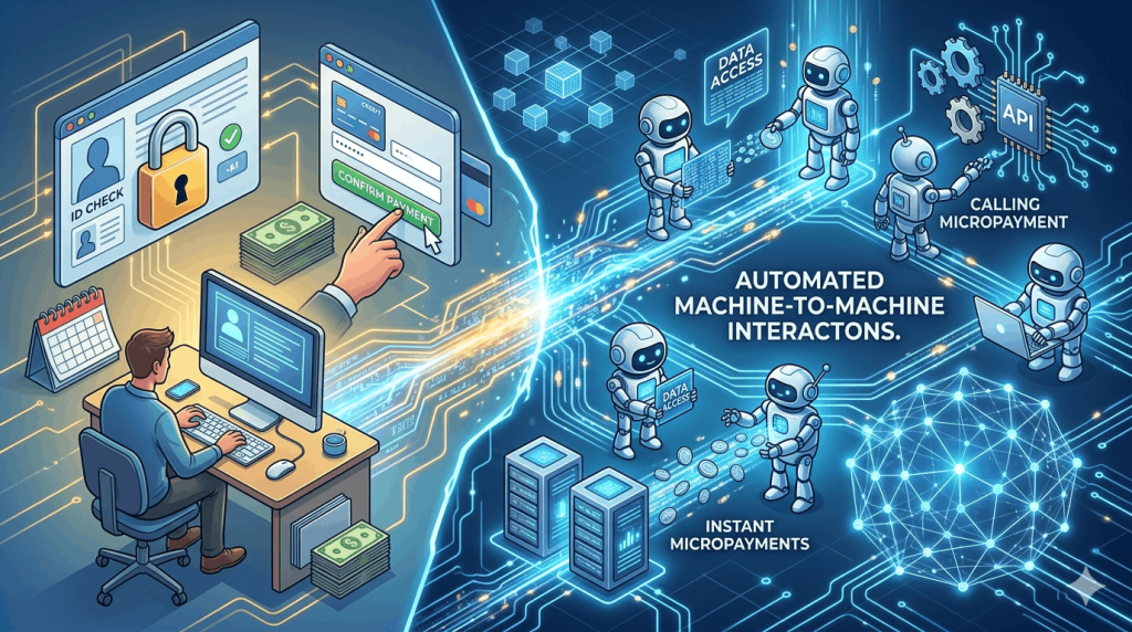 Internet hiện đại được tối ưu cho hành vi của con người, nghĩa là một người dùng muốn sử dụng dịch vụ thường phải mở tài khoản, xác thực danh tính ở một mức độ nào đó, đăng nhập, nhập thông tin thanh toán, bấm xác nhận giao dịch rồi mới được cấp quyền truy cập. Mô hình này vận hành khá tốt khi số lượng giao dịch không quá dày, giá trị mỗi giao dịch tương đối rõ ràng và toàn bộ quy trình có sự kiểm soát trực tiếp của người dùng. Tuy nhiên, AI Agent lại vận hành theo một logic khác hẳn. Một tác tử phần mềm có thể cần trả tiền cho từng lần truy cập dữ liệu, từng lần gọi một chức năng xử lý chuyên biệt, từng lượt yêu cầu mô hình, từng phiên tính toán hoặc từng đơn vị nội dung mà nó sử dụng để hoàn tất nhiệm vụ.